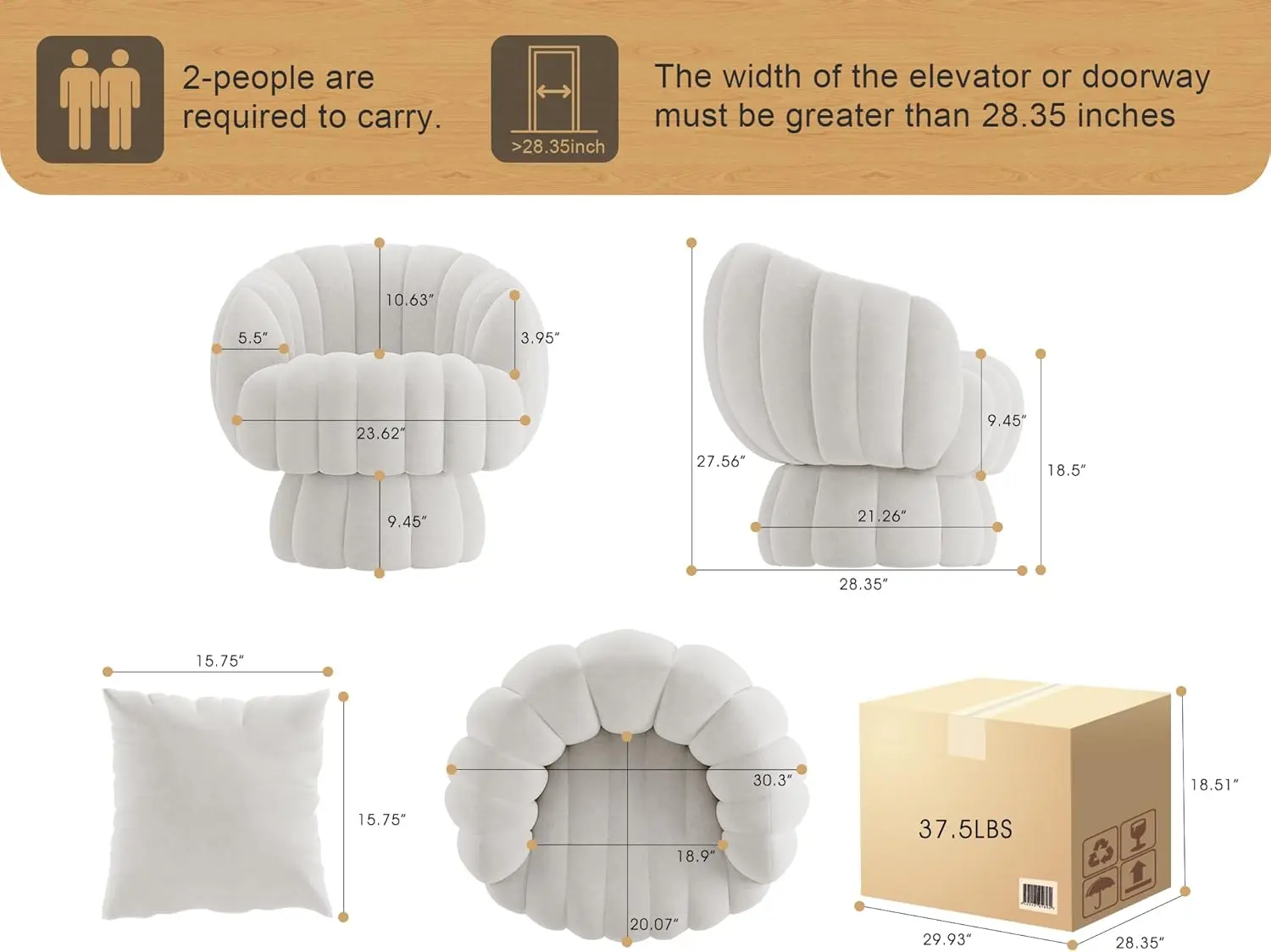 Mid Century Modern 360 Degree Barrel Swivel Accent Sofa Chair,Fluffy Velvet Fabric Lounge Wide Upholstered Pumpkin Reading Chair, Round Cloud Armchair for Living Room,Bedroom,Vanity(Beige)