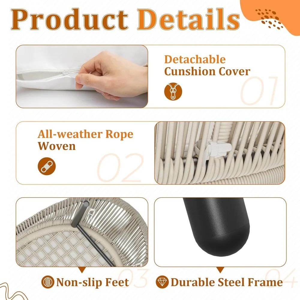 - Sturdy and Durable: patio furniture set has a powder coated surface for rust resistance and made of all-weather rope woven for fade resistance. With durable steel frame, patio furniture set can be used for long time. no need to maintenance, no worry to split, crack, fade, rot and deteriorate.