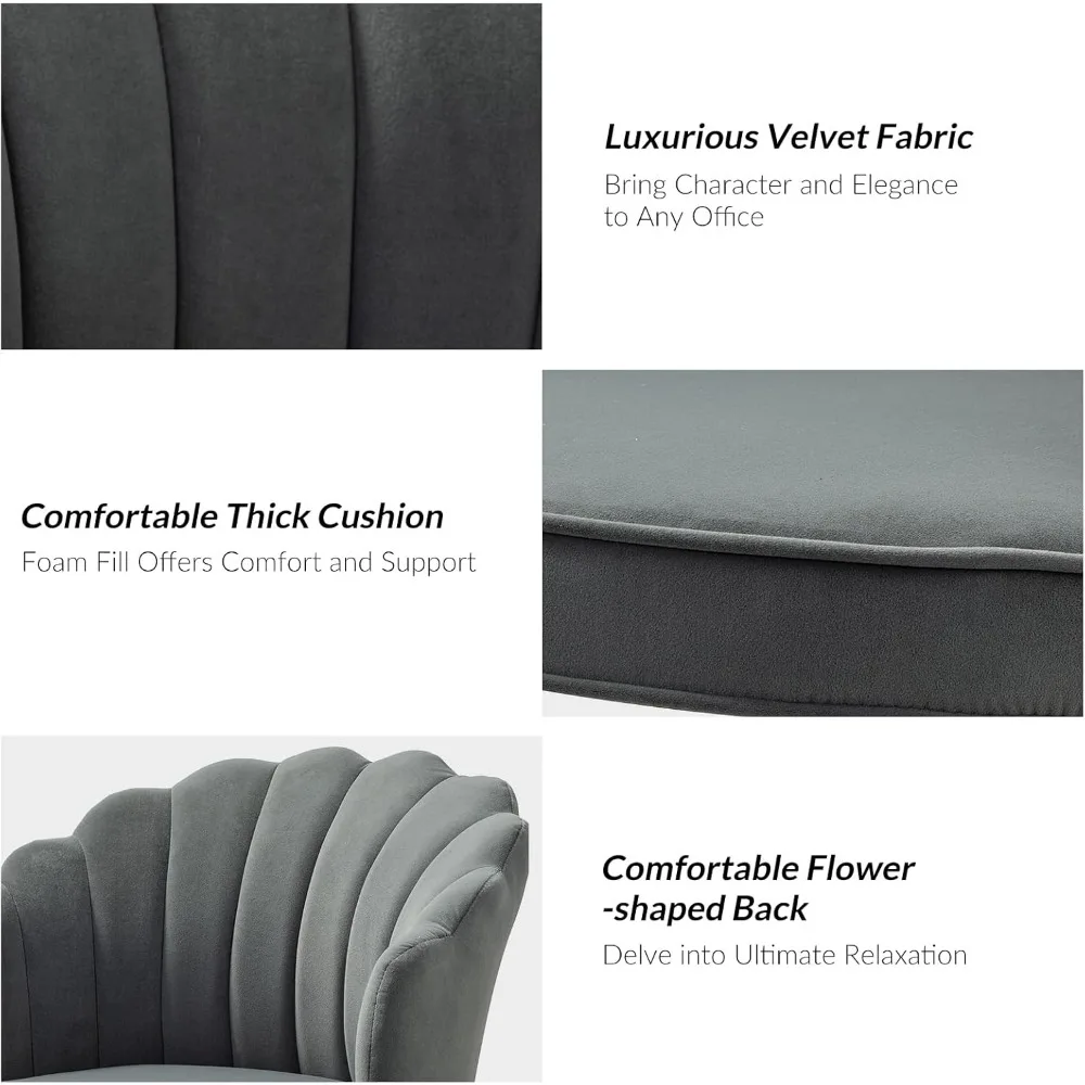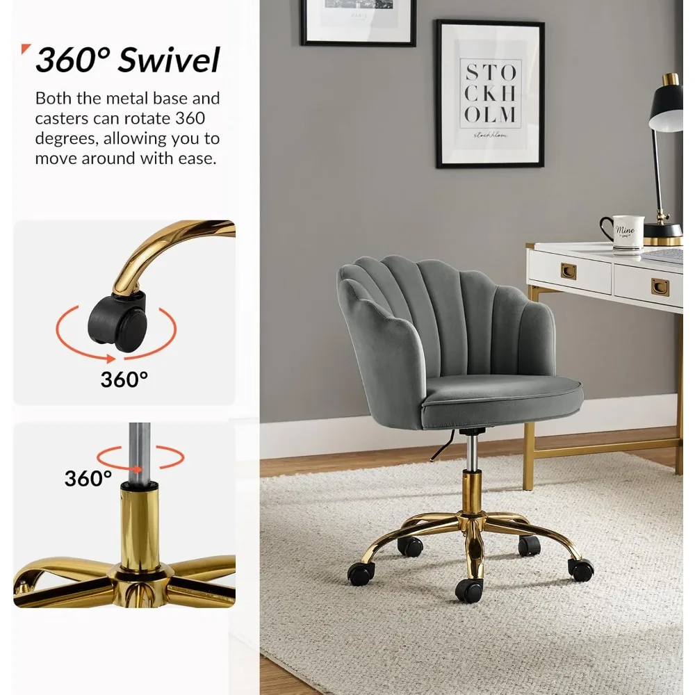 - 【 Modern Cute Design 】 Our velvet desk chair features a unique tufted shell shape design and a luxury gold metal base, combining modern aesthetics with cute charm. Whether it’s for your home office, living room, bedroom, or a makeup chair for women and girls, it seamlessly complements any decor theme.